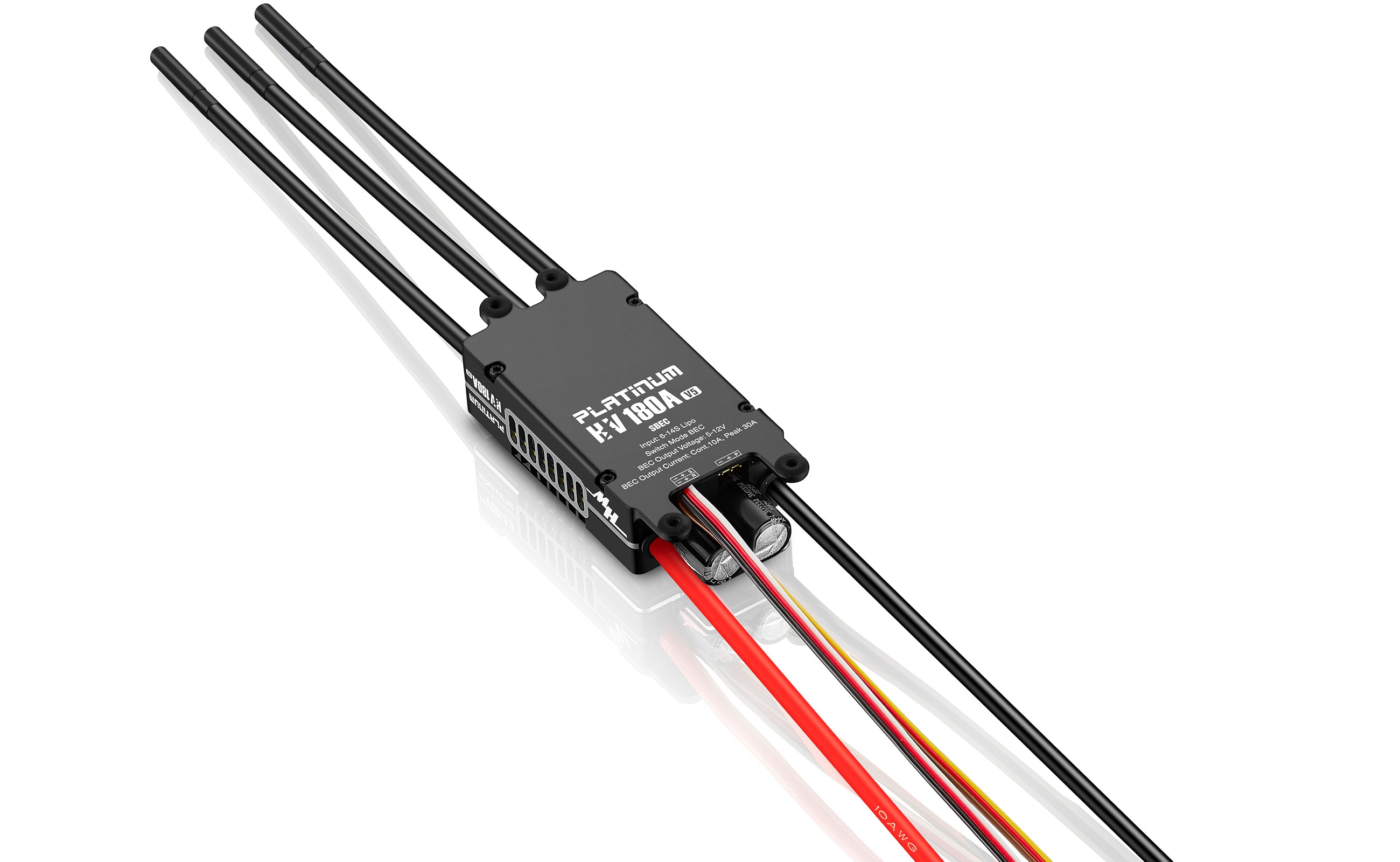 The new Platinum 180A HV V5 includes updates from case to PCB and everything in between. The Platinum 180A HV V5 is ready to tackle the demands of the most extreme flying while being comfortable for any level of pilot. It has a 6s-14s LiPo rating, with a 5-12V 30A surge-rated BEC, and heavy-duty 10AWG power wires, suitable for 550-700 size Heli builds or high-power fixed-wing planes.