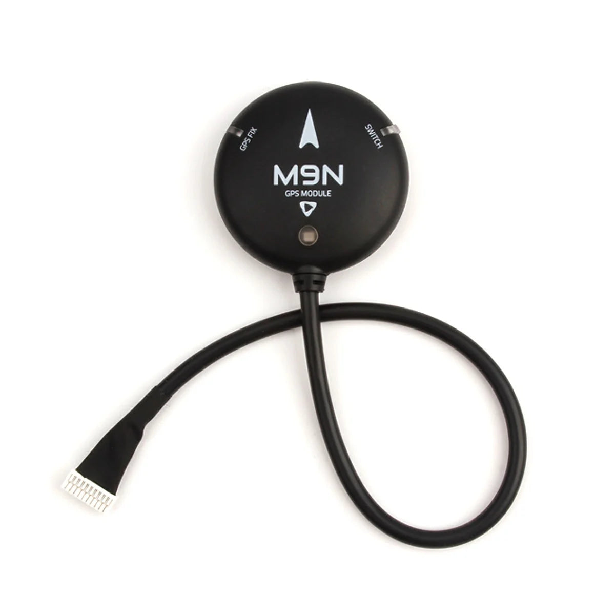 Holybro M9N GPS has a UBLOX M9N module, an IST8310 compass, a tri-colored LED indicator, and a safety switch. There are three different connector options for different purposes. This module ships with a baud rate of 115200 5Hz