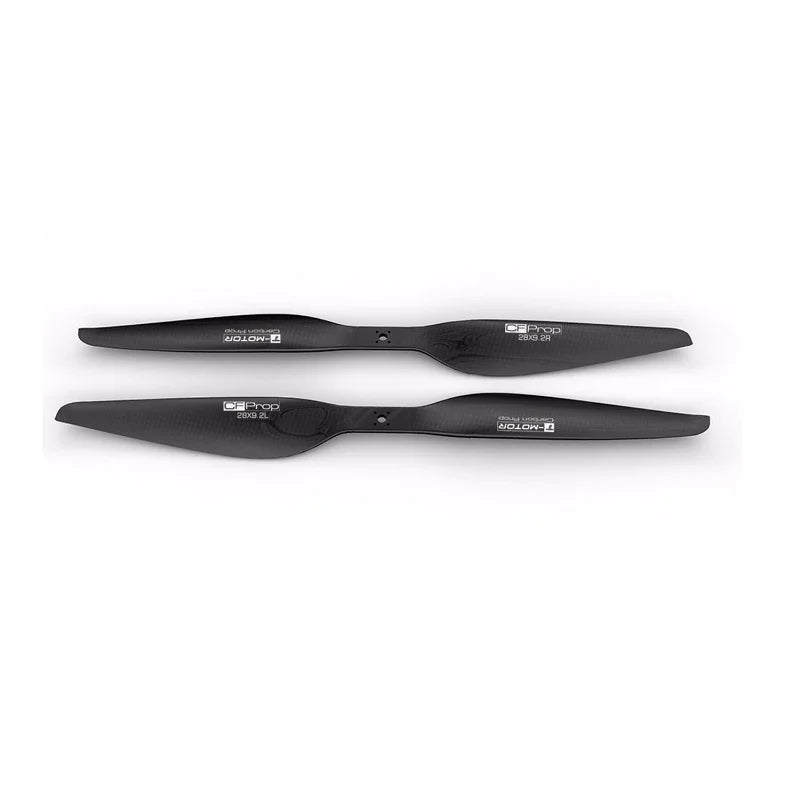T-MOTOR patented design improves the efficiency of longer flights. A special design of a winglet is employed to weaken the vortex and improve efficiency. The downward winglet abates the radial centrifugal tension and deformation quantity. Precise positioning avoids sweepback while the props are working. Push version propeller is special use on the bottom side of a co-axial frame. Improve safety performance with tightened fitted screws and locknut and two more hole sites. the innovative addition of a limit rubber ring to protect the propeller from abrasion and better shockproof competence