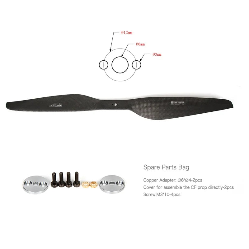 This is T Motors P21*6.3 Prop-2PCS/PAIR. T-MOTOR patented design improves the efficiency of longer flights. A special design of a winglet is employed to weaken the vortex and improve efficiency. The downward winglet abates the radial centrifugal tension and deformation quantity. Precise positioning avoids sweepback while the props are working. Push version propeller is special use on the bottom side of a co-axial frame. Improve safety performance with tightened fitted screws and locknut and two more hole sites. The innovative addition of a limit rubber ring to protect the propeller from abrasion and better shockproof competence.